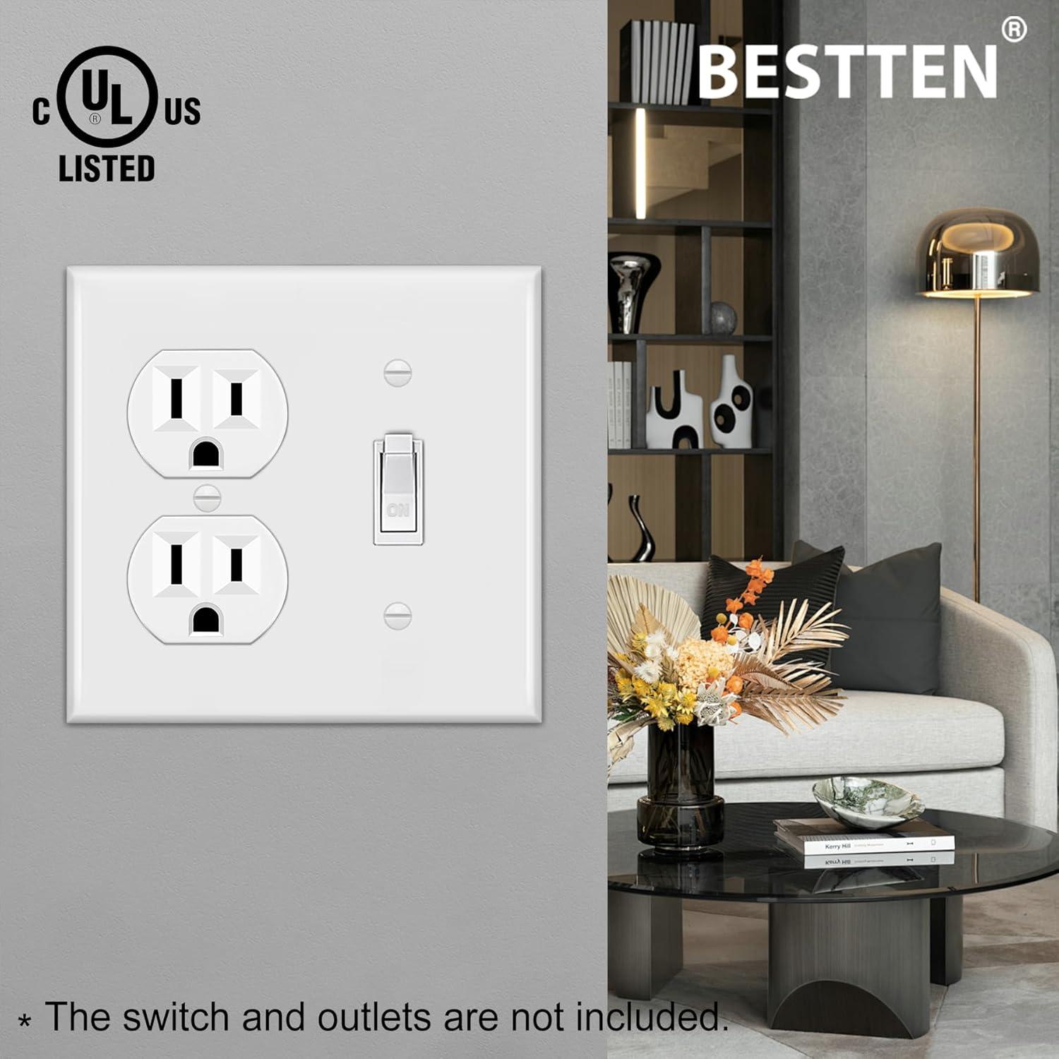 Compatibility: Best match with duplex receptacles and toggle switches. Specifications: H4.53” x W4.57” x D0.18”, 2-gang standard size wallplate, single toggle and single duplex, silver, matching color screws included