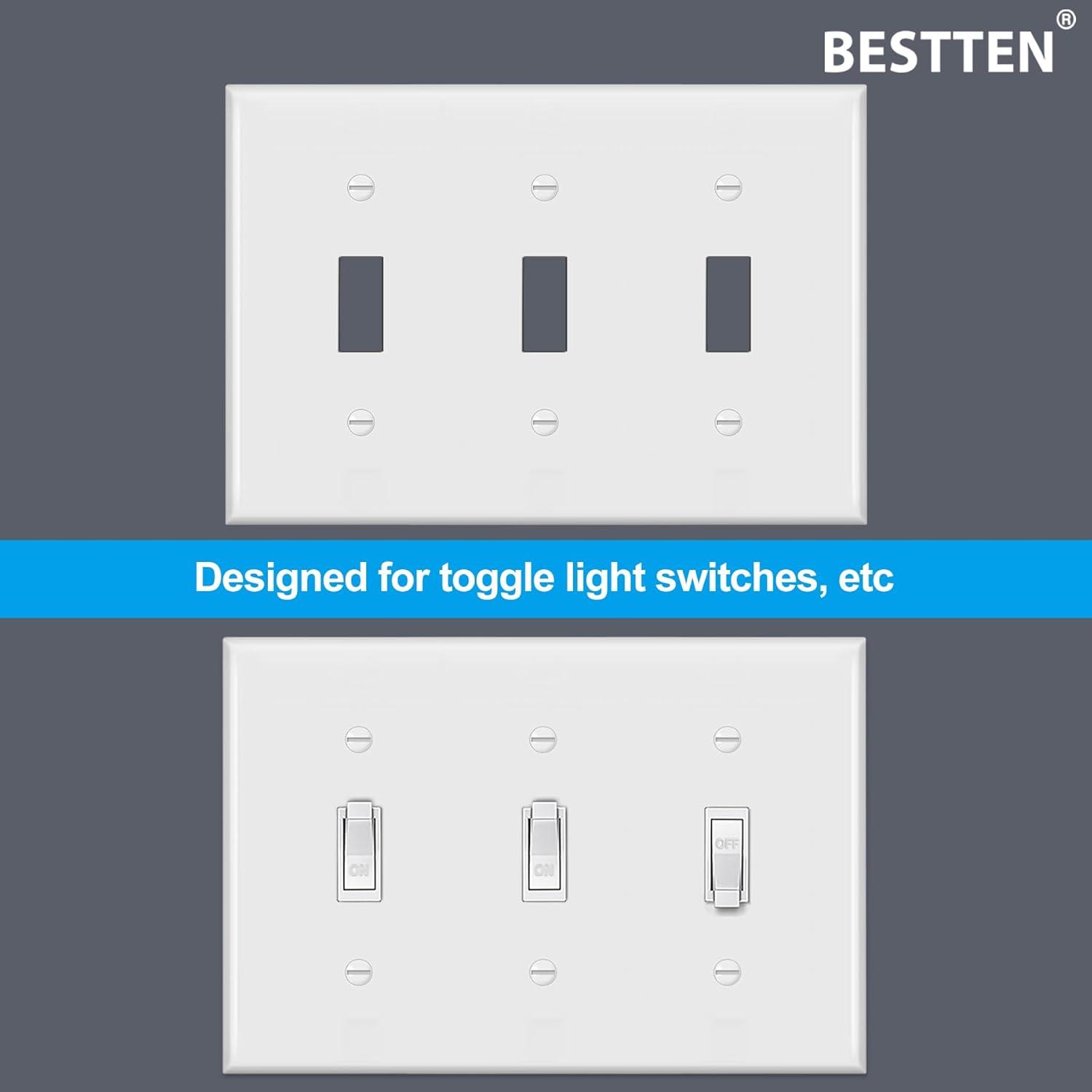 BESTTEN 2 Pack 3-Gang Toggle Wall Plate, Unbreakable Polycarbonate Toggle Light Switch Cover, Standard Size, UL Listed, White(White)