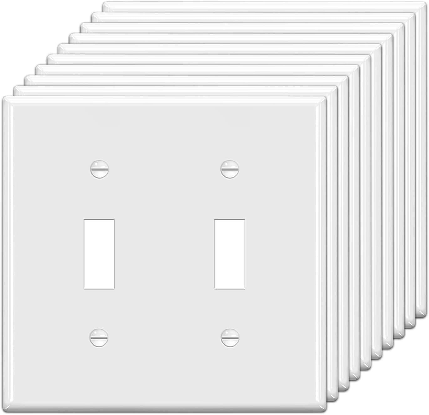 [2 Pack] BESTTEN 2-Gang Combination Wall Plate, 1-Decor/1-Toggle Outlet and Switch Cover, Standard Size, UL Listed, White
